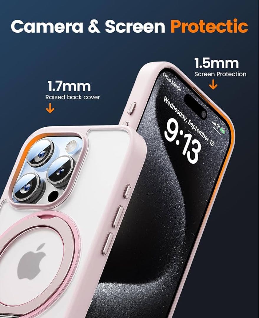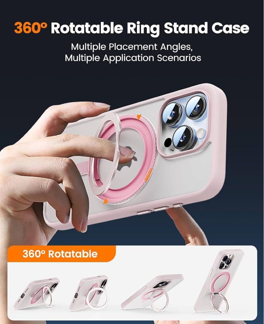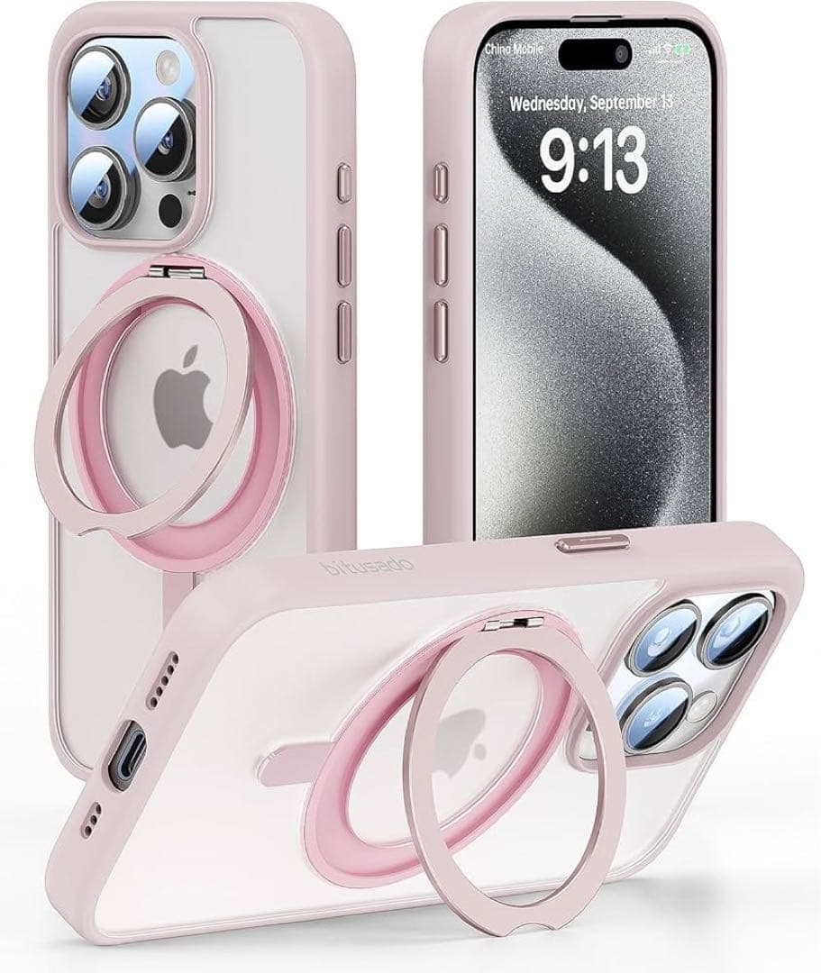 bitusado 360°回転可能な磁気リングスタンド iPhone 15 Proケース用に設計されています、[MagSafe対応] [ミリタリーグレードの耐衝撃] 半透明マットケース スタンドPro 6.1インチ(ピンク) 2023 16-43 9923 0561