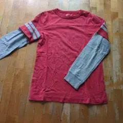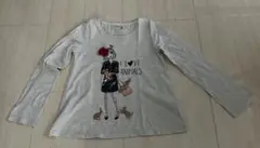 グレーの長袖カットソー、鹿のイラストとカラフルな飾り付き。