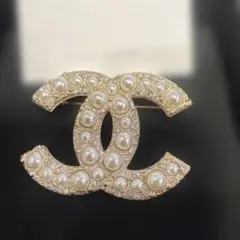 エレガントなCCロゴのブローチ、クリスタル装飾付きです。
