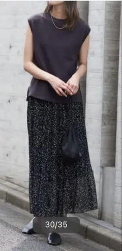 ❥グレーに黒のシアー素材を重ねたロングスカートが大人可愛い♡