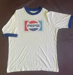 青とグレーのストライプにPepsi Colaロゴが映えるTシャツ。90〜03s