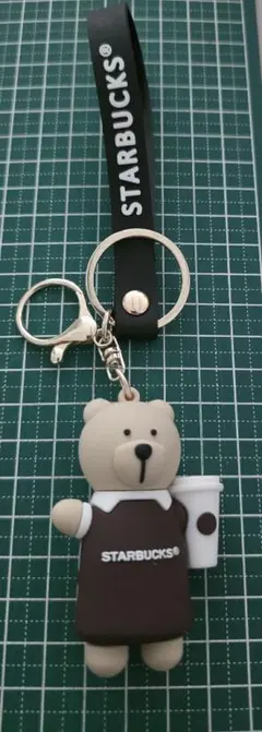 スターバックスのクマのキーホルダー、ブラック色で可愛らしいデザイン。