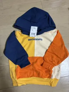 ホットビスケッツ 100cm ネイビーのボタン付きカーディガン風トレーナー、蝶ネクタイ風のリボン、キャラクター刺繍とストライプ内側が特徴でとてもかわいいです。
