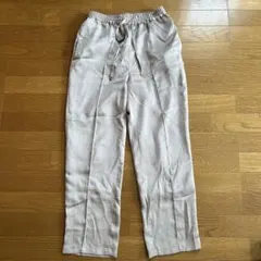 光沢のあるグレーのパンツ