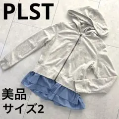 グレーのフード付きパーカー、サイズM、PLST製。