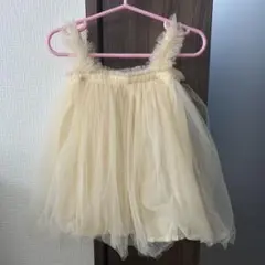 スカート部分はふんわりと広がるチュール素材で、ボリューム感がありながらも軽やかな着心地。裏地付きで透け感を気にせず着用できます。