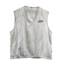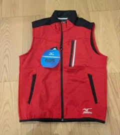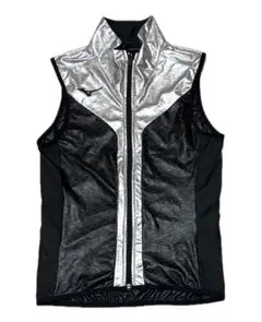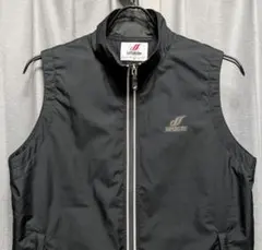 Mizunoのキルティングブラックベスト、軽量でスタイリッシュなデザイン。