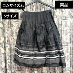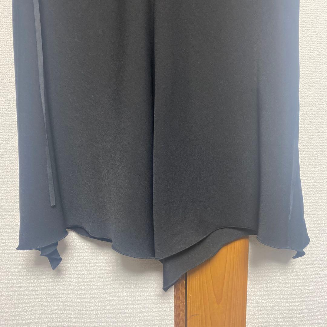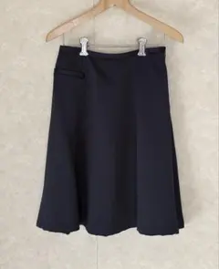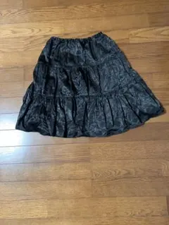 シンプルでエレガントな黒のフレアスカート、ひざ丈デザイン。