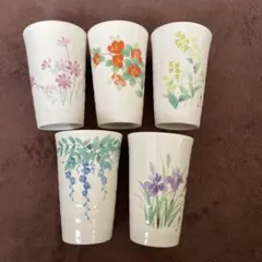 花柄陶器コップ5個セ...
