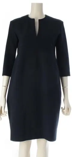 七分丈のスリーブが上品なドレス。デコルテラインを美しく演出する胸元のスリットラインには、YOKO CHAN オリジナルのパールをあしらい華やかに。