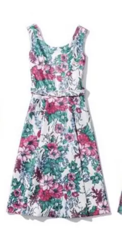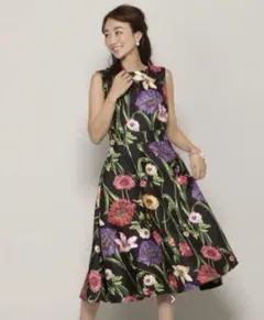 このワンピースは、シンプルでありながらエレガントなノースリーブデザインが特徴です。フレアスタイルが女性らしさを引き立て、様々なシーンで活躍します。