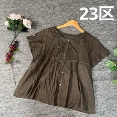 【 23区 】 チェック ウール混 緑 黒 シャツ ブラウス 美品 キレイめ