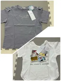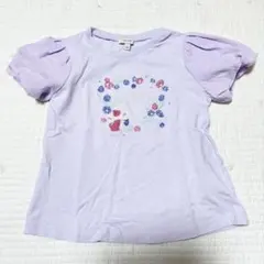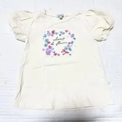 リボンと花の刺繍が施されたピンクのTシャツ、サイズ120。
