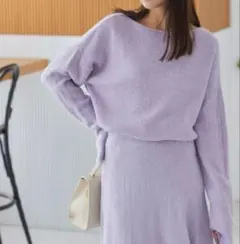 新品未使用 ラベンダー ニット スカートセットアップ M