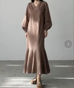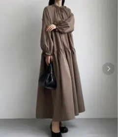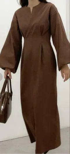 【ほぼ未使用】Loure 長袖ボリュームワンピース ブラウン