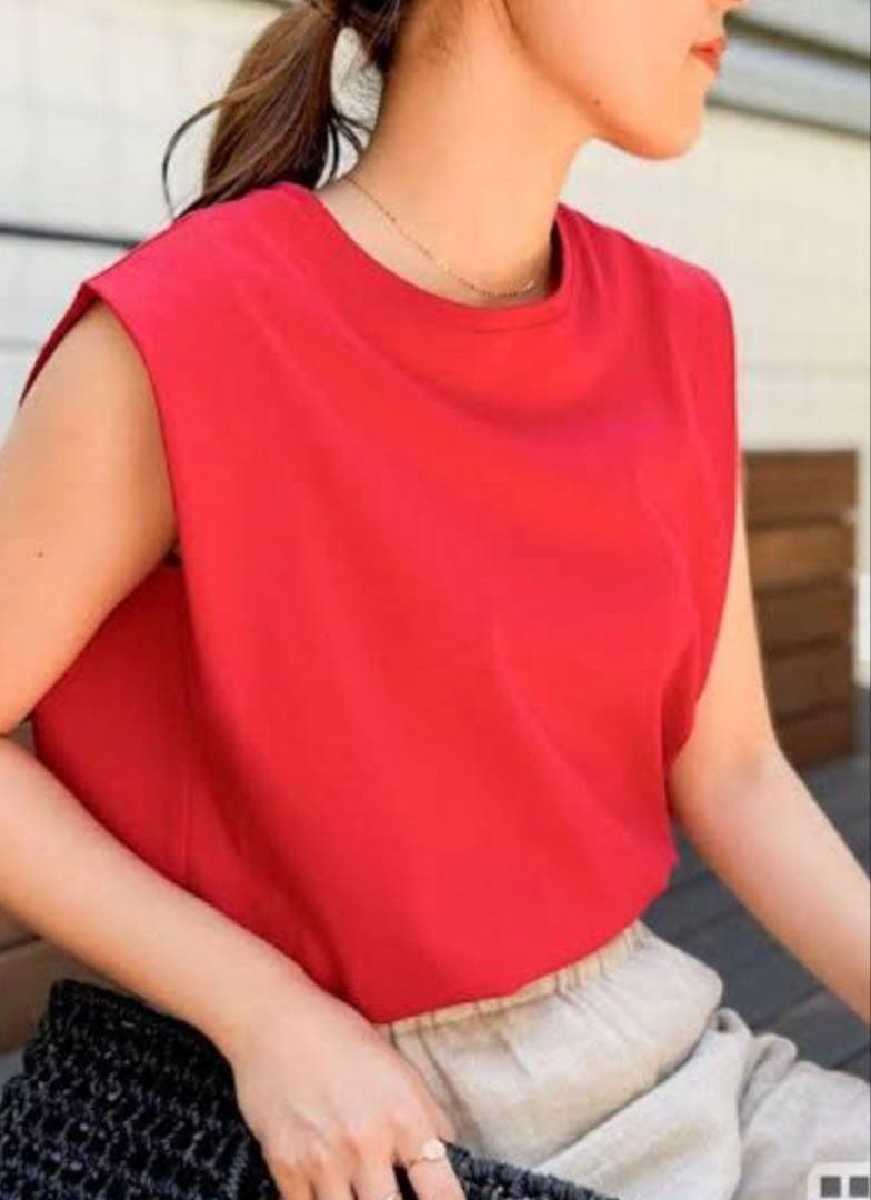 ・肩口にタックを入れた立体的なノースリーブデザイン