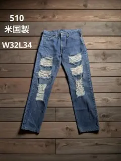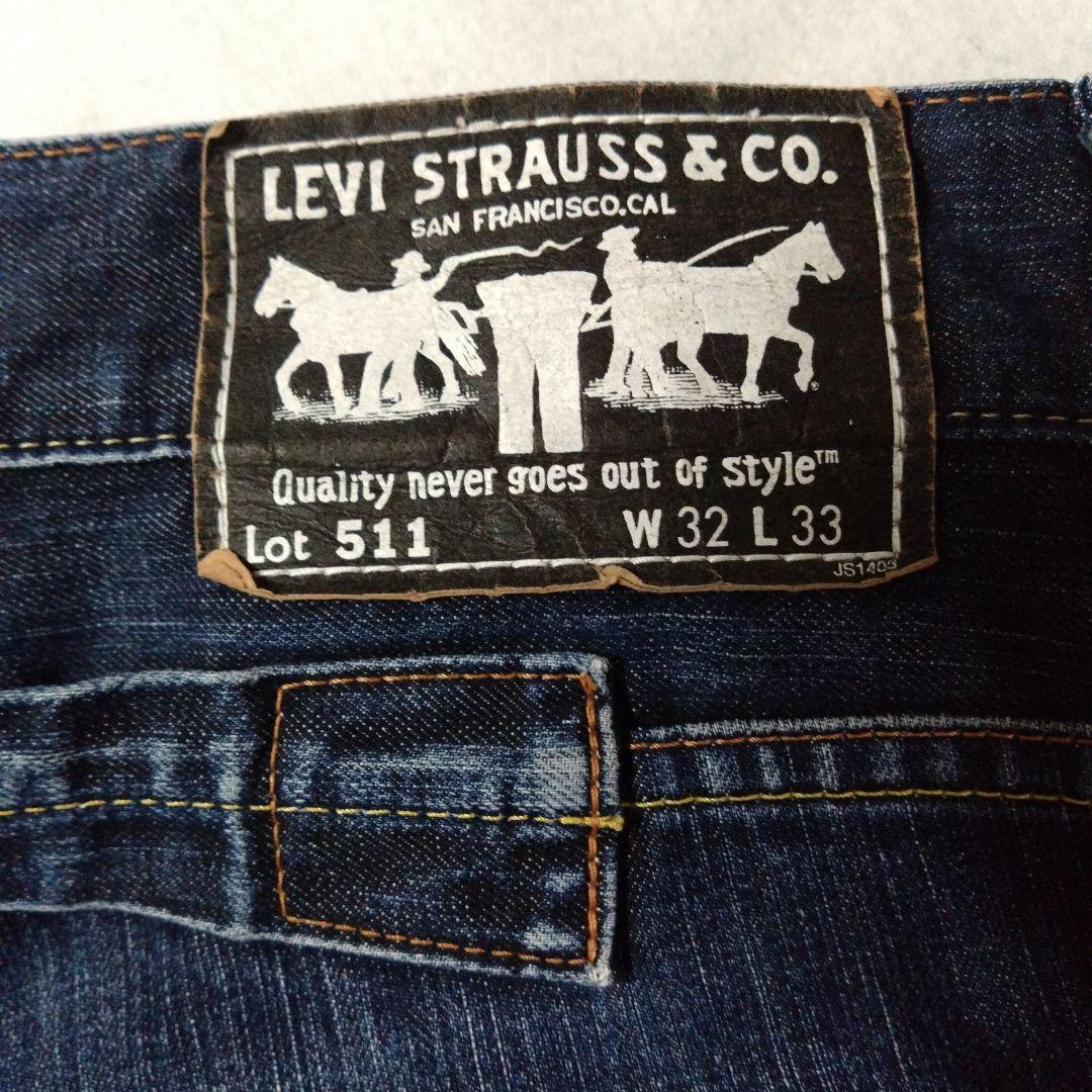 Levi Strauss & Co.のLot 511、W32 L33のストレートデニム、バックにジッパーポケット付き。
