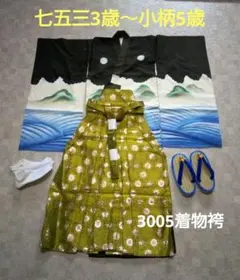 鷹に松の柄裄がデザインされたお宮参り、七五三、3歳男児の襦袢、袴付のお着物です。