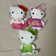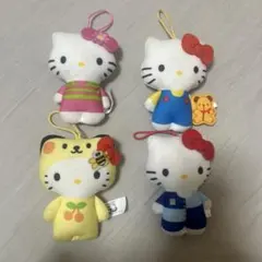 かわいいウサギの帽子とゴマ団子の着ぐるみきたネコのフィギュアセット。