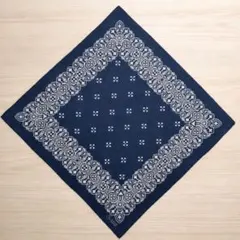 深みのあるチベットブルーが印象的な、大判バンダナ。