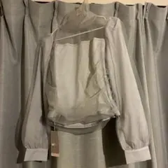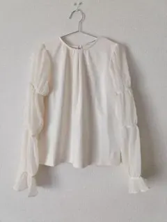 【サイズ】着丈約52㎝(シフォンの長い部分まで) 身幅約46㎝ ウエスト幅約41㎝ 肩幅約34㎝ 袖丈約63㎝