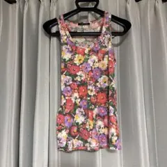 ブルー イエロー フレア ノースリーブ ホワイト タンクトップ ギャル