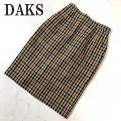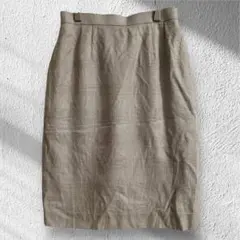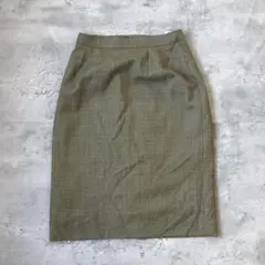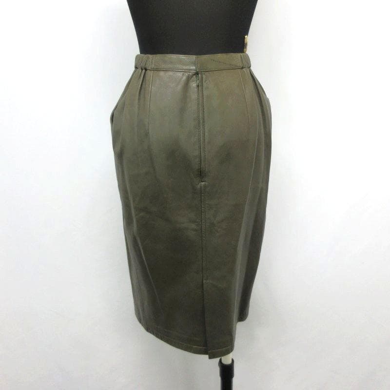 ◇DAKS ダックス 羊革 タイトスカート カーキ W63-66 バックジップ レディース スリット フォーマル サイドゴム