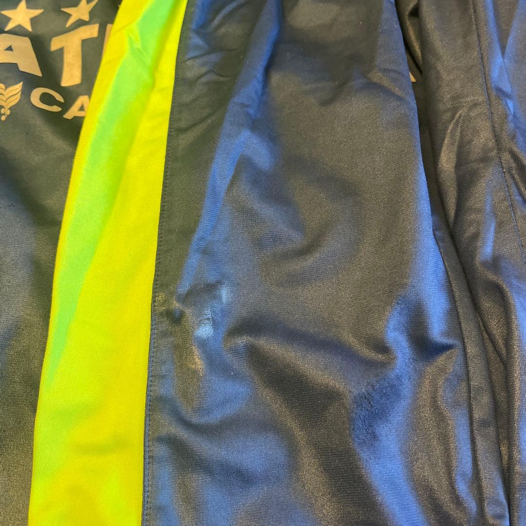 ネイビーとライムのコントラストが特徴的なATHLETAのスポーツジャージ。