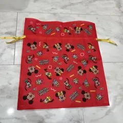 ディズニーリゾート ミニーマウス、ミッキーマウスサイン入り巾着ポーチ