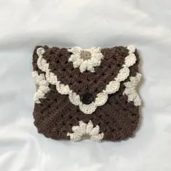 編み物 手作りポーチ イヤホンケース AirPodsケース スナップボタン かぎ針編みあみもの ワイヤレスイヤホン