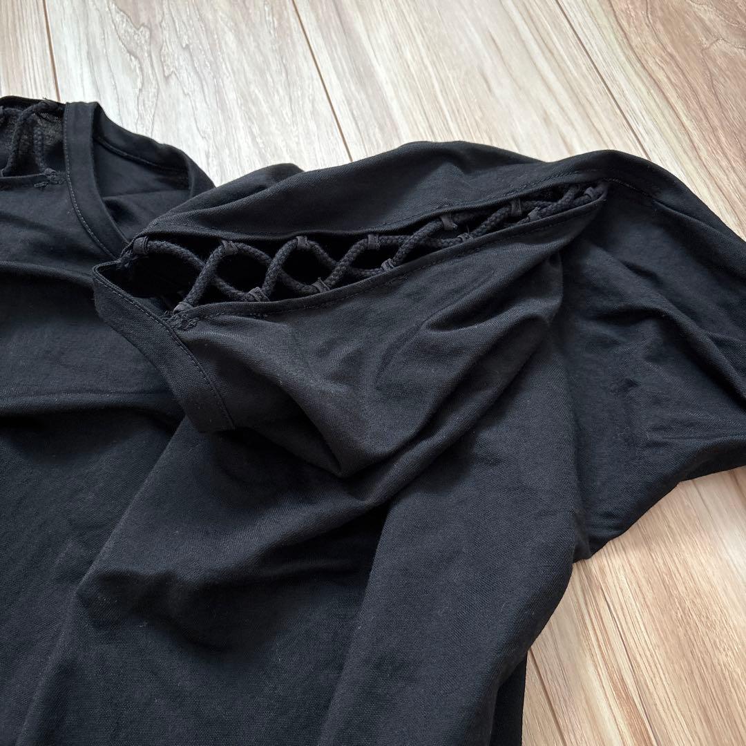 オーバーサイズ 黒 Tシャツ スリーブカットアウト