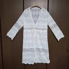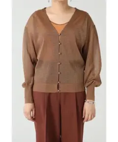 ローズバッド グレー ニットカーディガン フリンジ アルパカ混 バンドカラー
