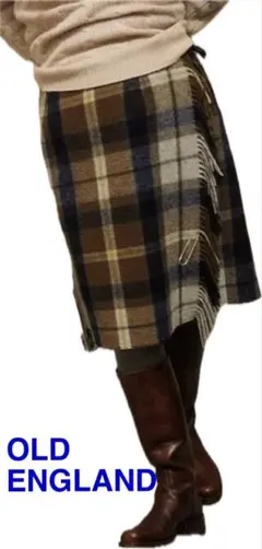 OLD ENGLANDらしい、気品と遊び心のあるガンクラブチェックの巻きスカートです。