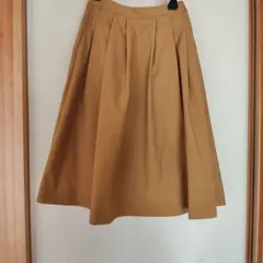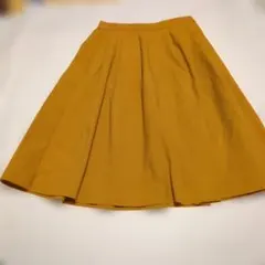 マスタードカラーのフレアスカート、Mサイズ、軽やかな素材感で春夏に最適。