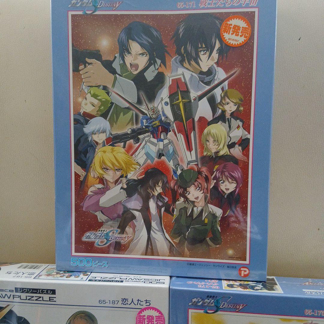ガンダムシリーズの500ピースジグソーパズル、複数のキャラクターが描かれています。