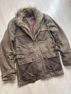 首元、裾、リブ、正面開閉部分のファーが特長的な