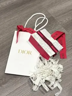 DIORのホワイトショップ袋とピンクリボンのセット。