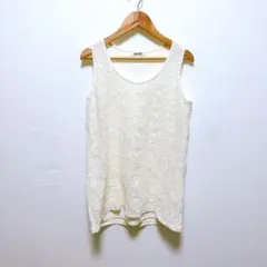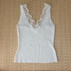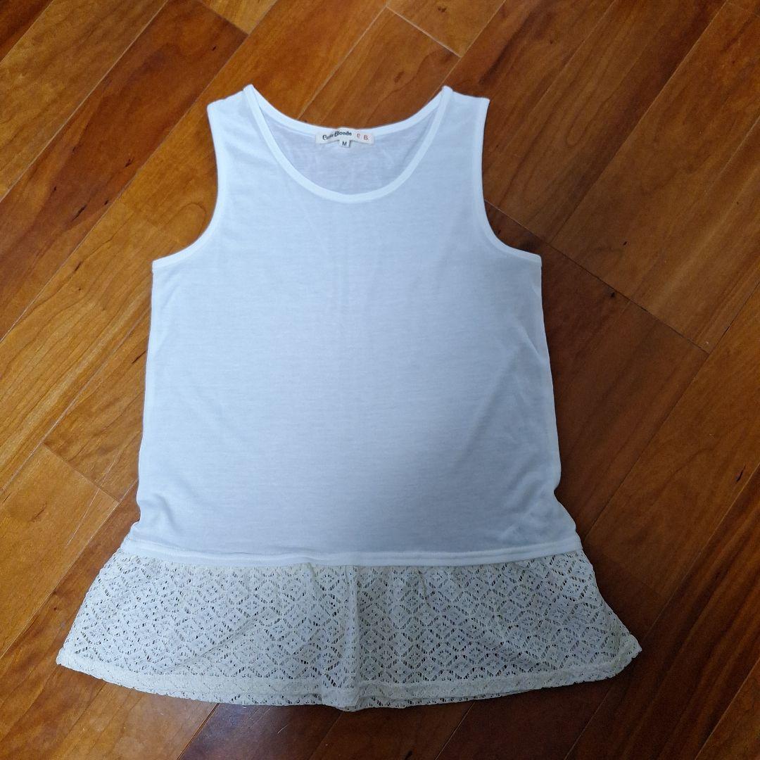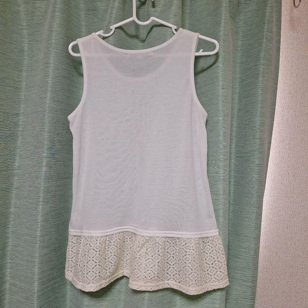 白 裾レース タンクトップ Mサイズ