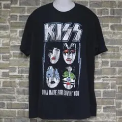 KISSのグラフィックプリントが施されたブラックTシャツ。カジュアルなスタイルに最適。