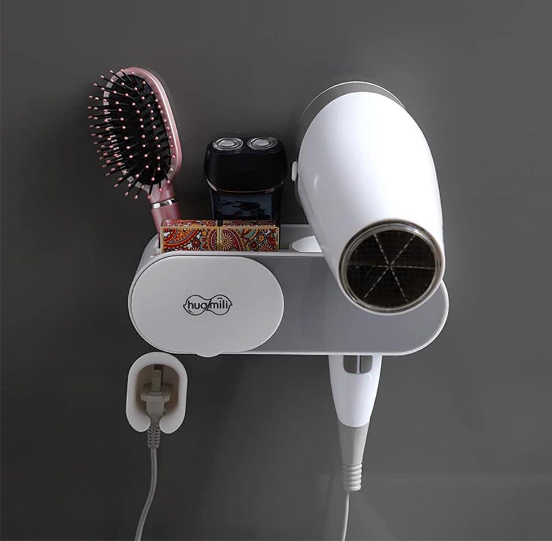 ヘアドライヤーホルダー ウォールかけ 壁掛け おしゃれ 小物収納 多機能 ラック 大容量 穴開け不要 浴室 ホルダー タオルホルダー ドライヤー置き (グレー)2-31