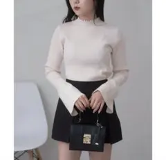 このニットは、ピンクでフリルデザインが特徴的です。フリルは、シンプルなスタイルに華やかさを加え、カジュアルにもフォーマルにも合わせやすいです。