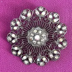 シックなエメラルド色、ルビー色、ブラウントパーズ色などのラインストーンセットされた素敵なブローチ♪