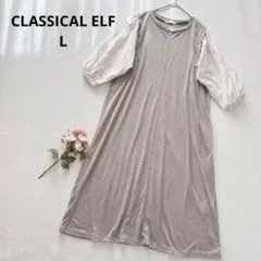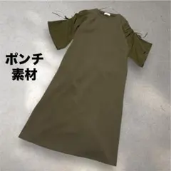 ベージュの優しい光沢と表情のある生地で七分のぽわん袖が可愛いワンピース!