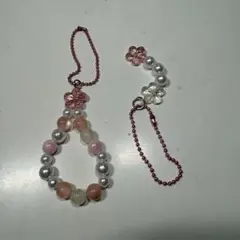 ハンドメイド ビーズストラップ ピンク