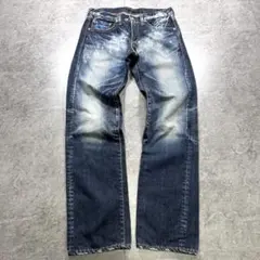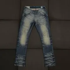 ユーズド加工やシワ感(ヒゲ・アタリ)が立体的に施されており、