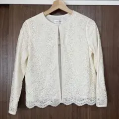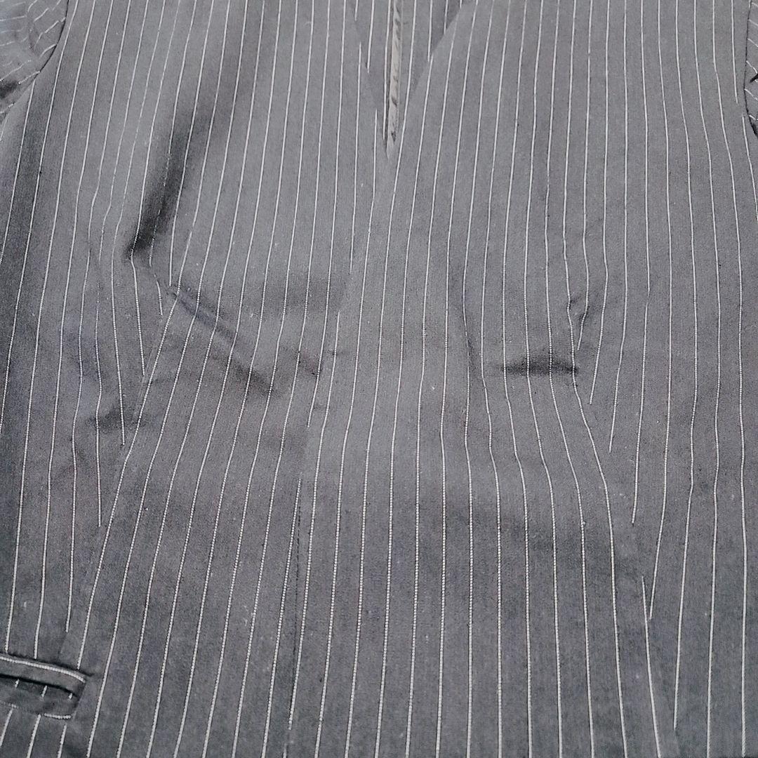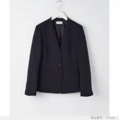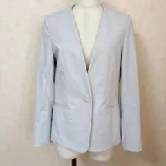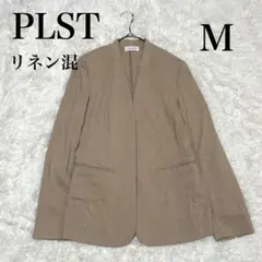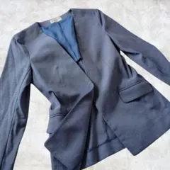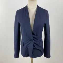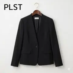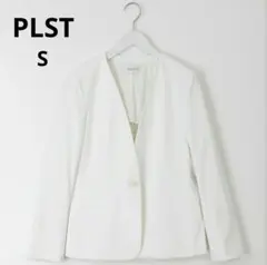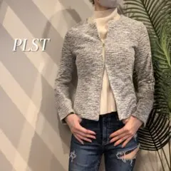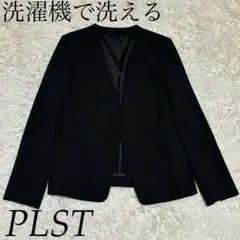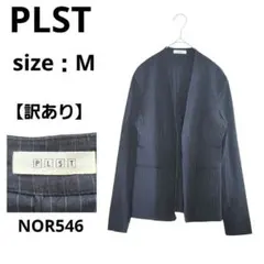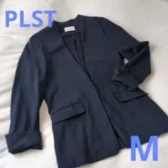 PLST プラステ ノーカラー ジャケット ネイビー ストライプ ストレッチ S