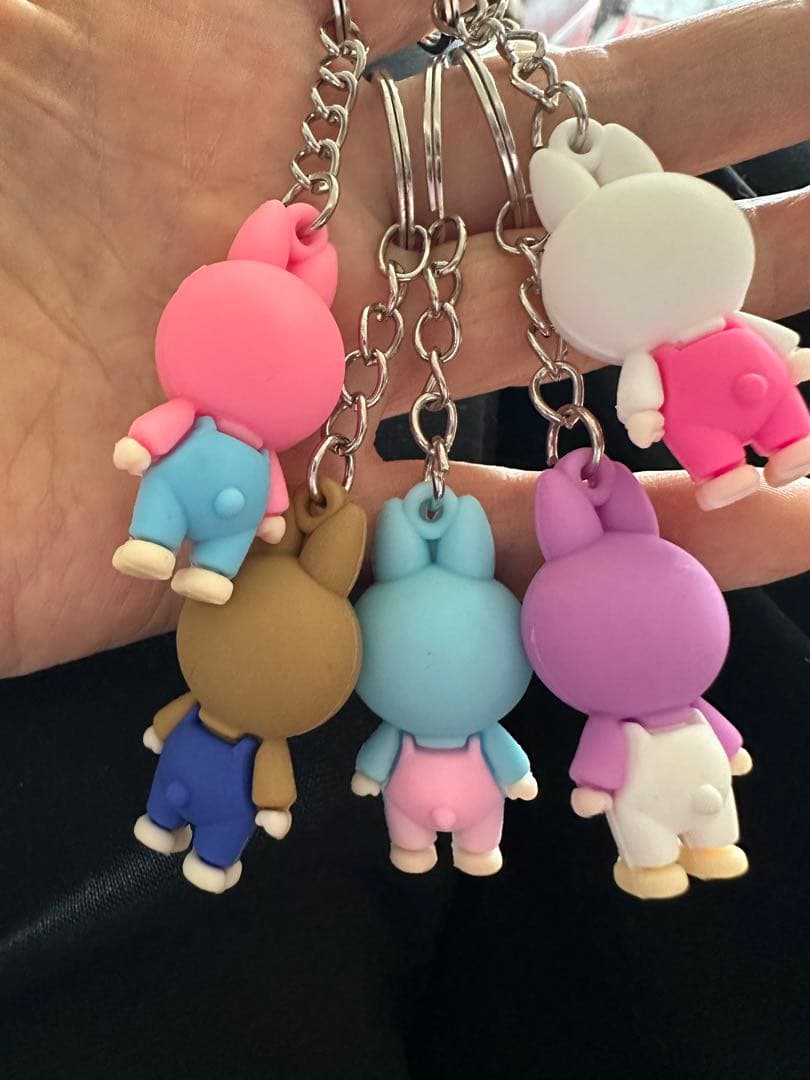 カラフルな動物耳付きキャラクターのシリコンキーホルダーセット。