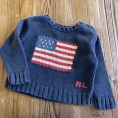 アメリカ国旗とクマのデザインが特徴のRalph Laurenのニットセーター。