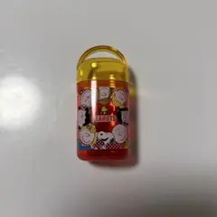 スヌーピーとルーシーのイラストが施されたイエローのプラスチック製キャラクターグッズ。