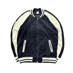 ☆深いブラックのベロアが魅力の中綿入りブルゾンで、胸元には同色刺繍のエンブレムが入り、落ち着いた存在感のある一着。リブ襟と太めのジップが組み合わさり、キルティングの質感と相まってクラシックな雰囲気に仕上がっています。カジュアルにもシックにも合わせやすく、冬場のアウターとしてデイリーに活躍。ワイドパンツやデニムなどとも相性が良く、スタイリングの主役になるアイテムです。
